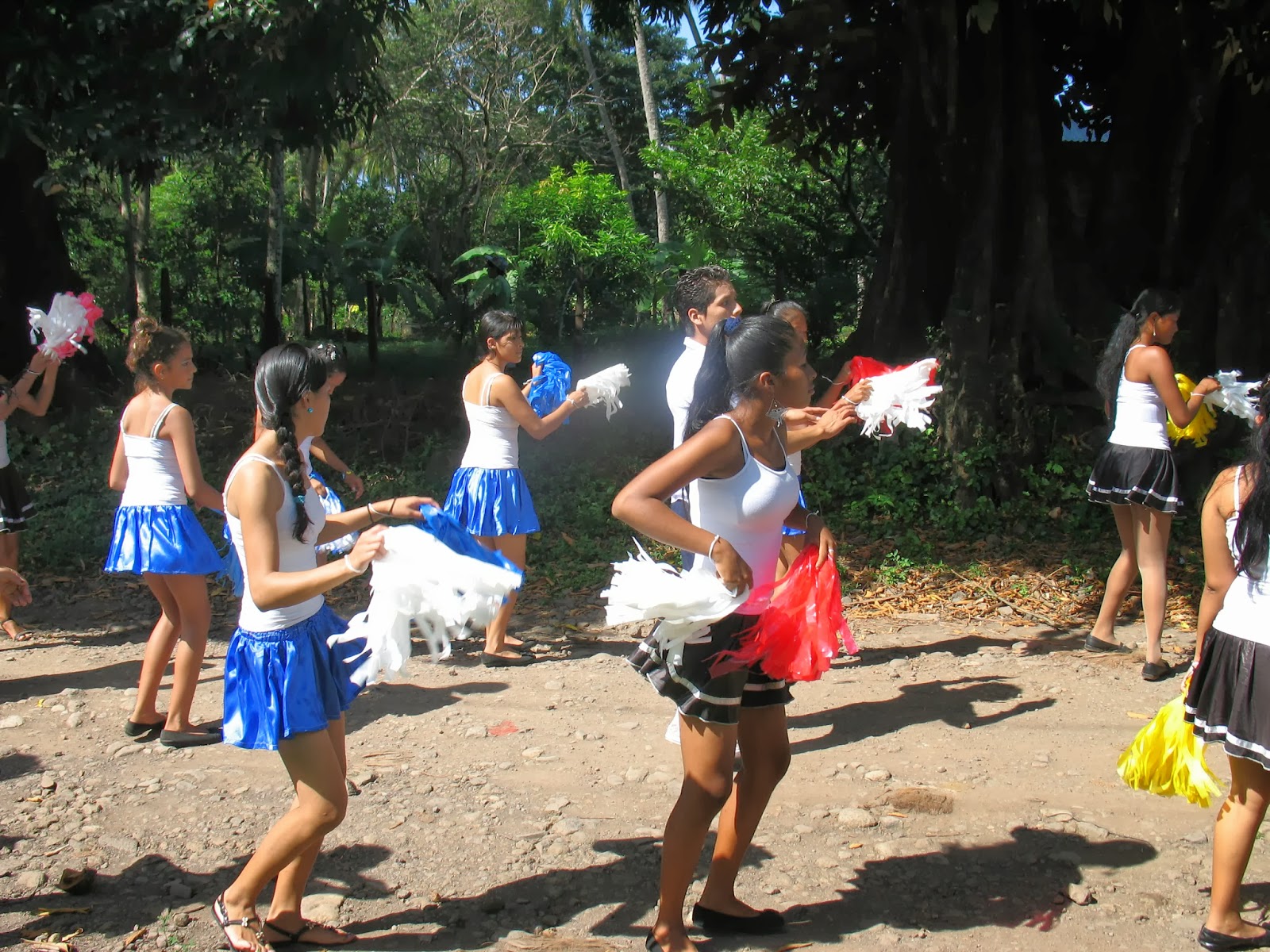 Bex! wandered about, getting pictures of the festivities while I hung with the class. This gave me ample opportunity to charm the moms with my limited Spanish. It was hot and sunny, so we made use of any shade we encountered as we waited for the event to start. After short wait, the lines of kids started slowly marching up the road toward the entrance to the school. We got to the schoolyard and saw more trucks and pop-up tents and the basketball court decorated with flowers. They had a couple of tables set up where the Fuente Pura reps and the school administrators would make speeches. Speakers and a couple of microphones - these was a legit event! Music played and the drummers drummed. Kids followed teachers to find space to sit, everyone vying for any shade that could be found. At least there was some entertainment during some of the waiting - check out the video below.
